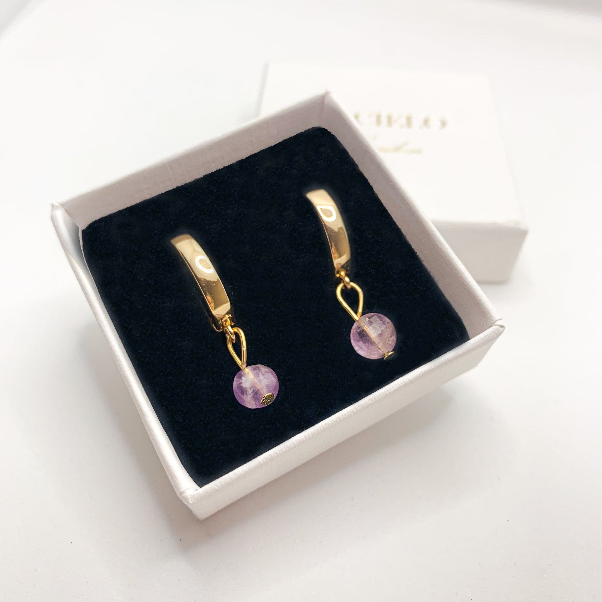 Beautiful Amethyst Huggie Earrings, with natural gemstone and contemporary trendy design