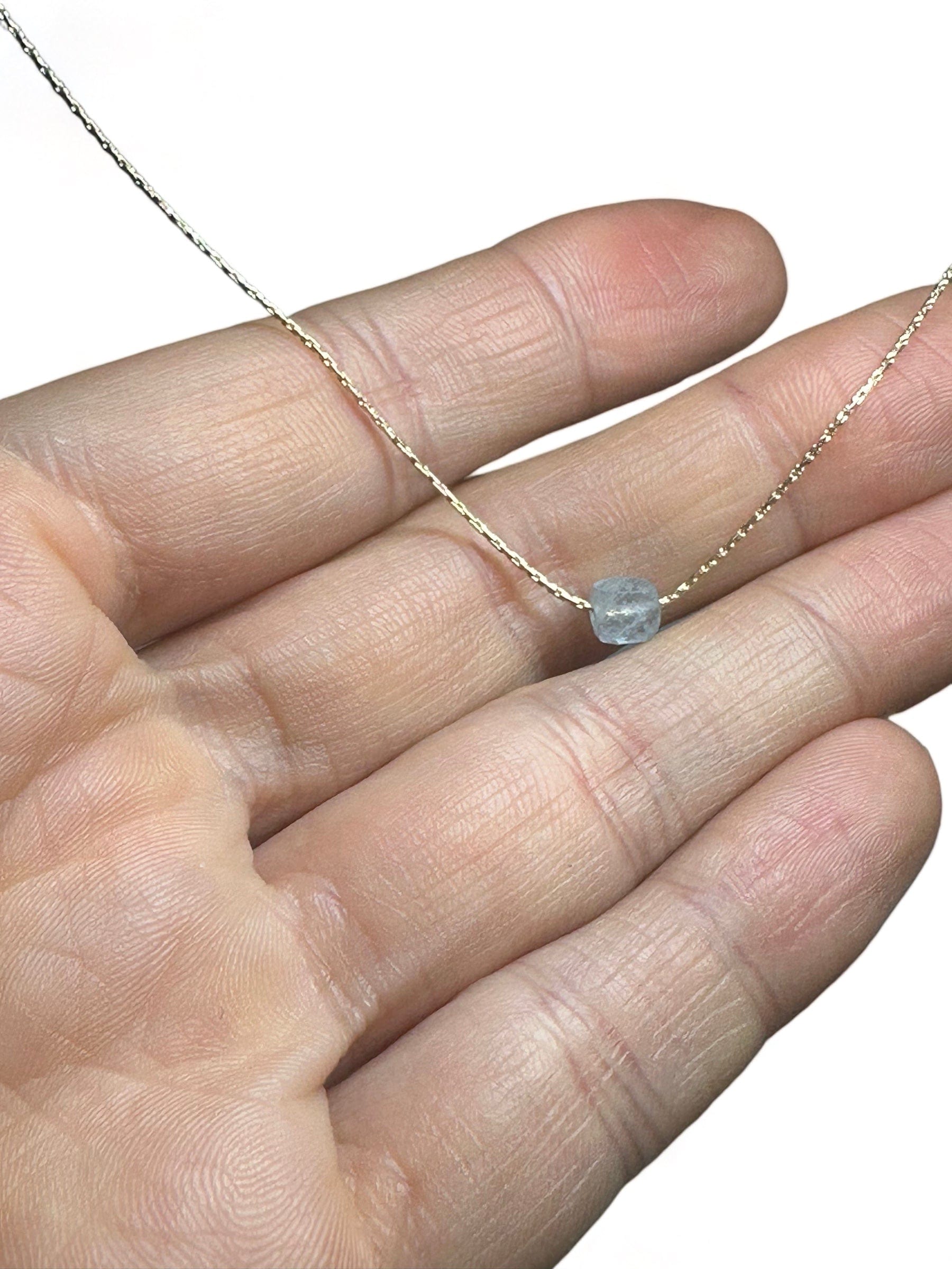 Experience the stunning beauty of an Aquamarine Gold Necklace - the perfect accessory for any minimalist look. Made with genuine square-cut gemstone and crafted with a 14k gold filled chain, this necklace exudes elegance and sophistication.