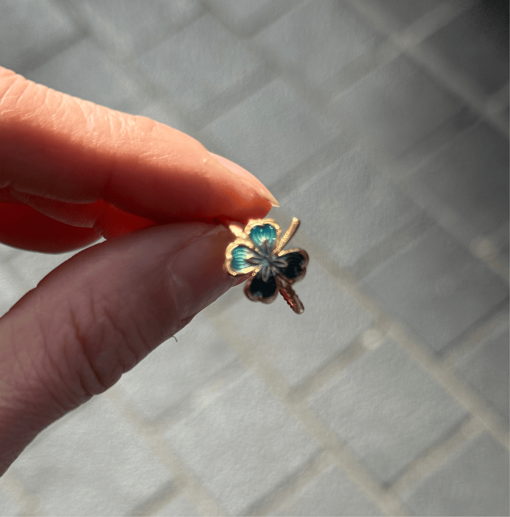 Blue Clover Enamel Gold Ring (4 Leaves)