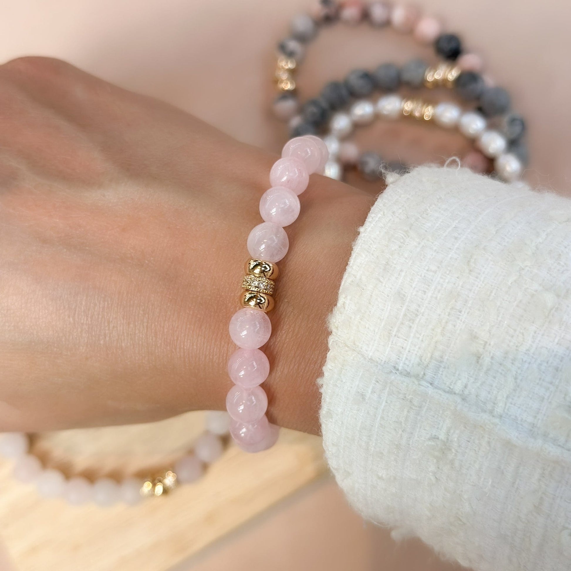 Rose quartz Bracelet Gold 8mm <br> Bohemian Bracelet