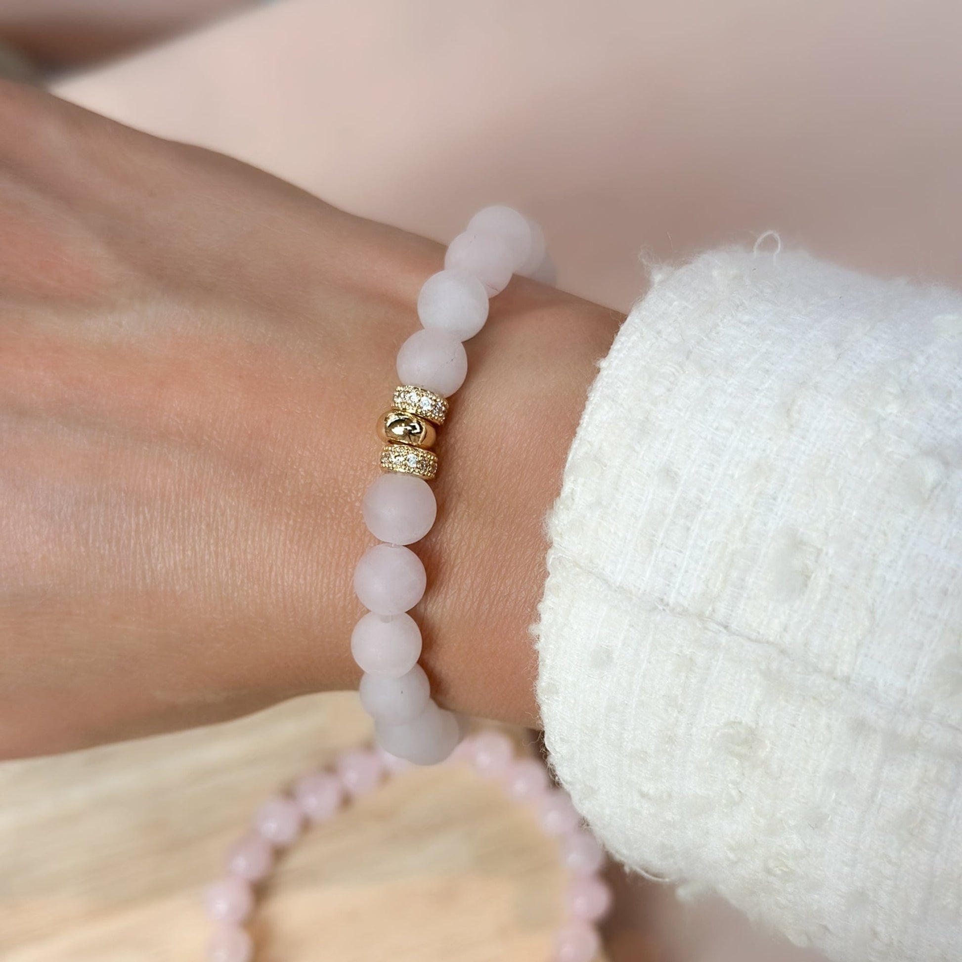 Bohemian Rose quartz Bracelet Gold 8mm