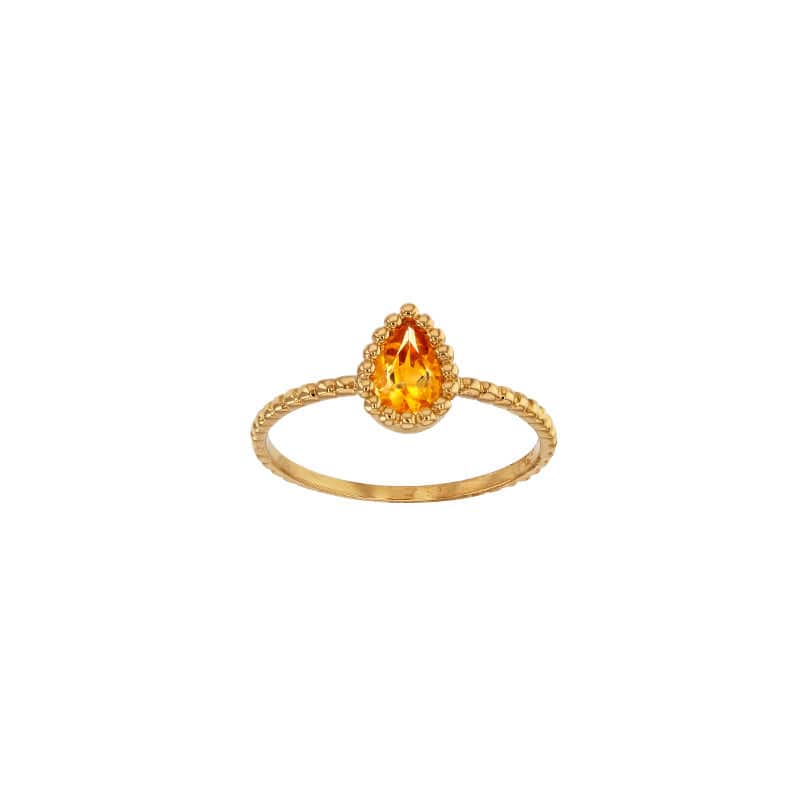 Citrine Pear Gold Beaded Ring (18k Gold)