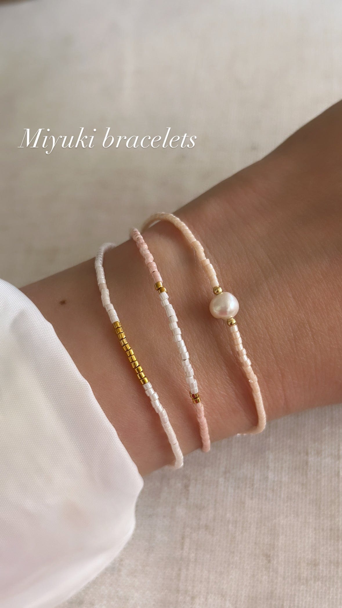 Beautiful White Ivory Miyuki bracelet, hand made with gold details