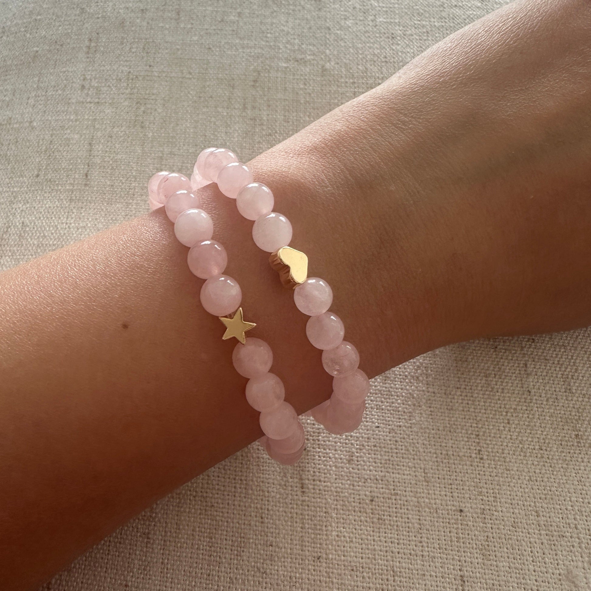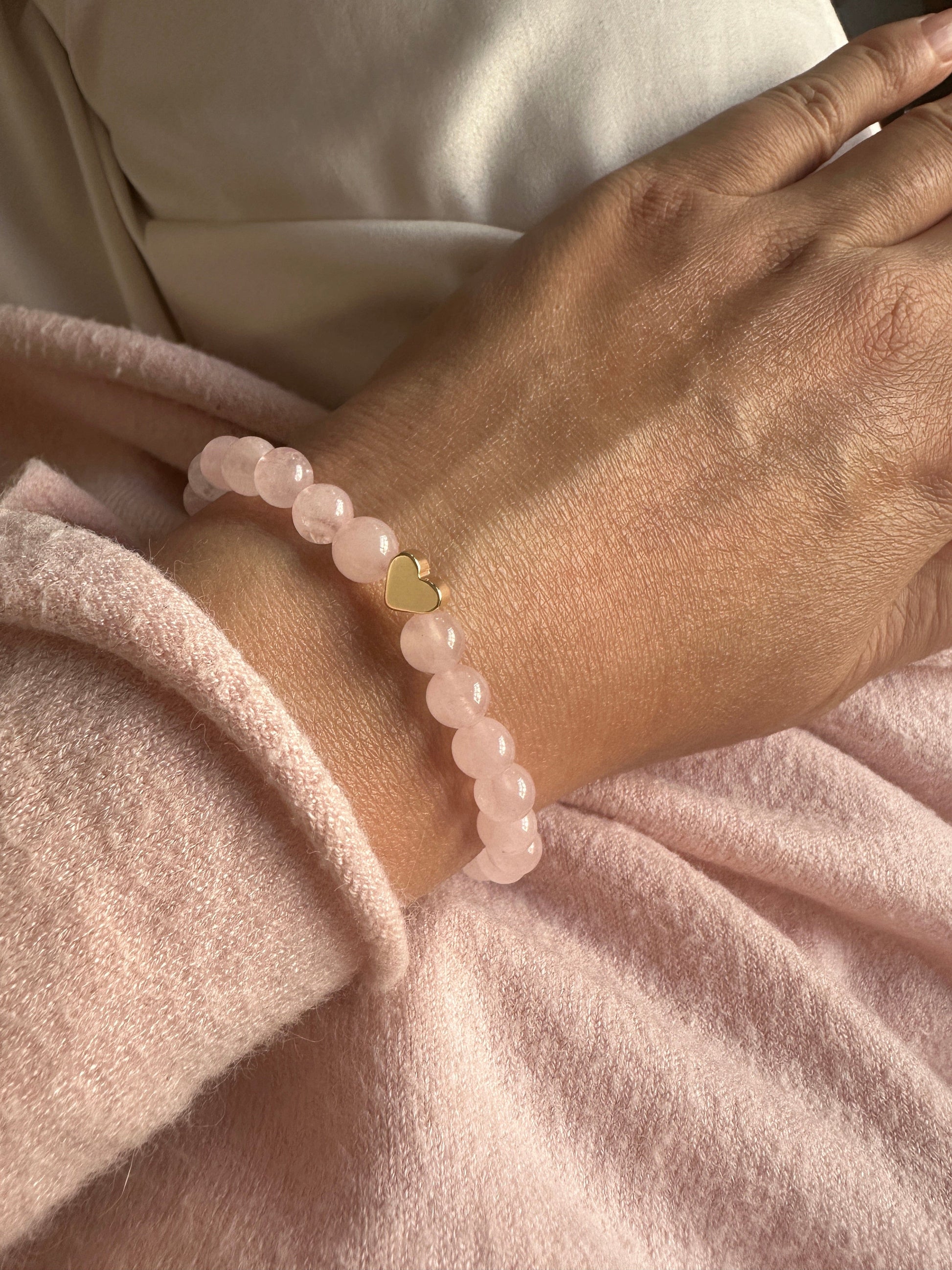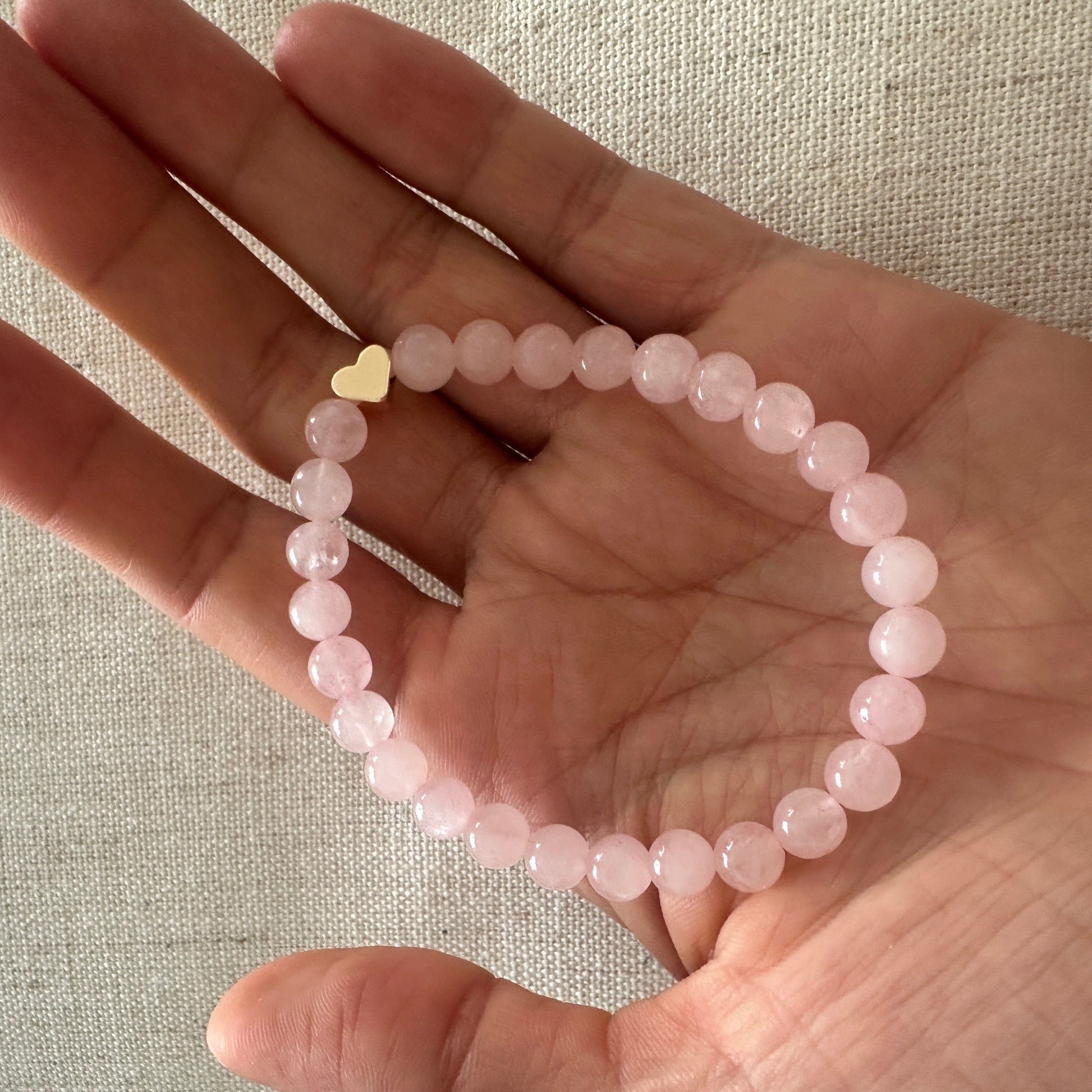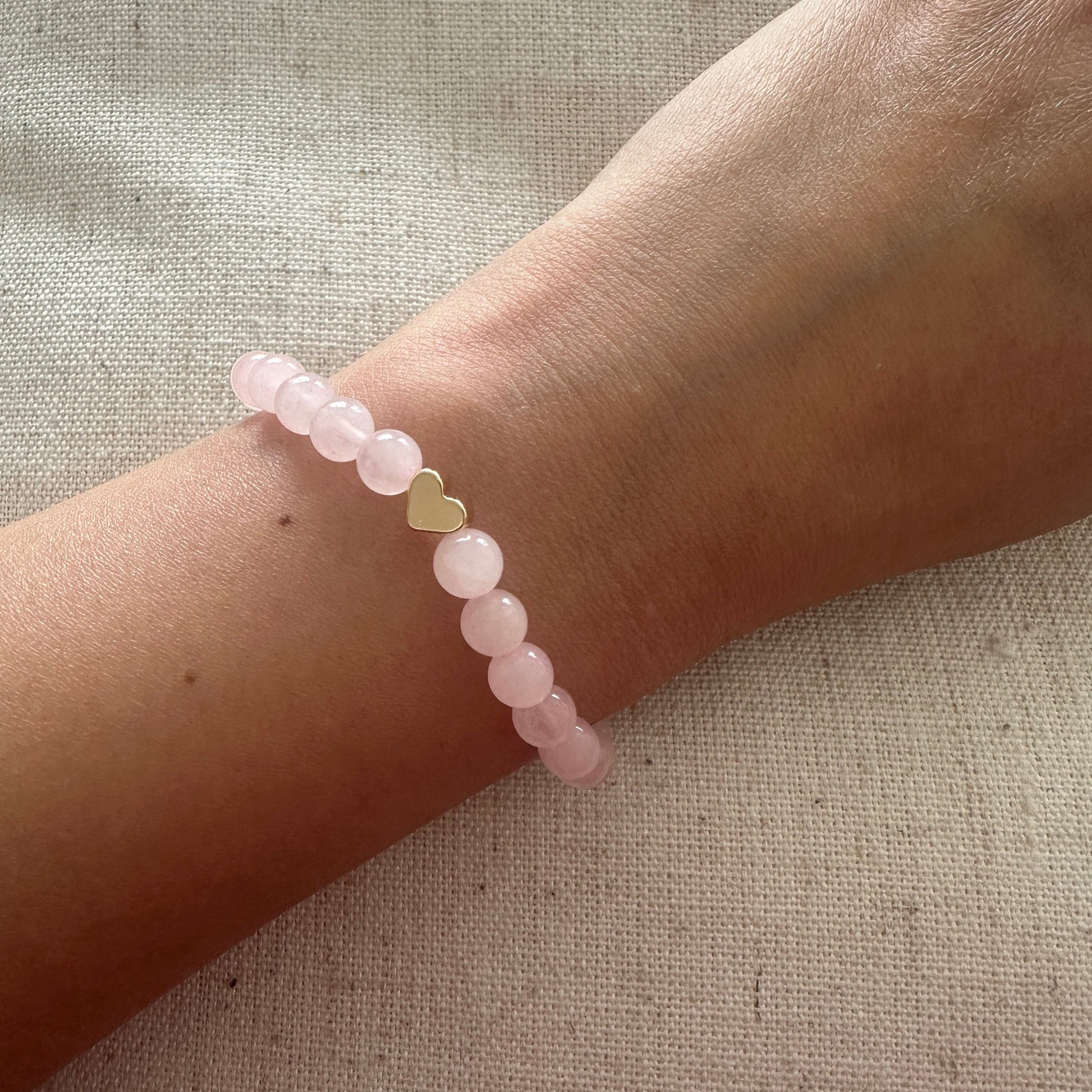 Rose quartz Bracelet Gold Heart 6mm <br> Bohemian Bracelet