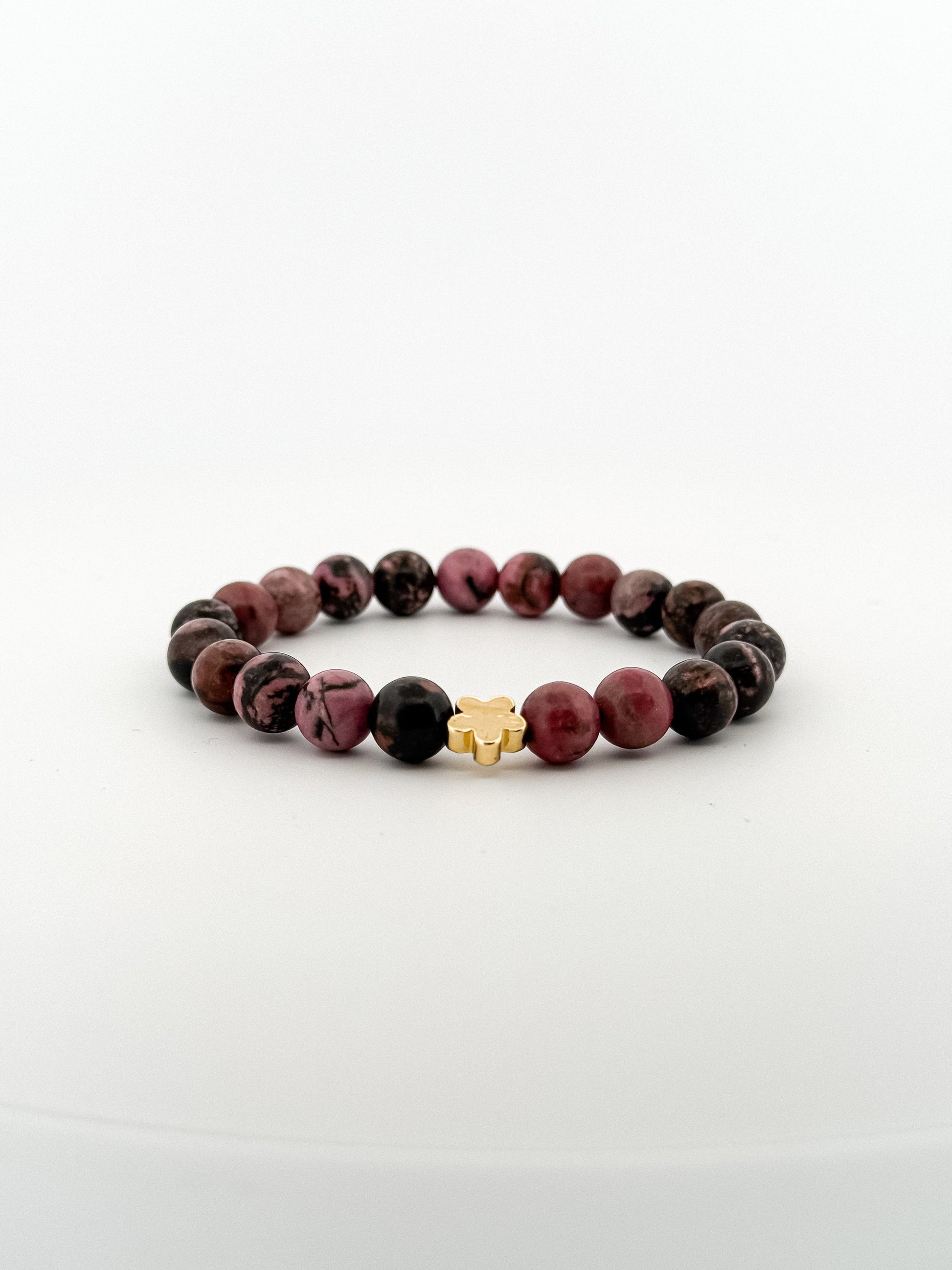 Dark Rhodonite Bracelet Gold 6mm Gold Hippy Flower