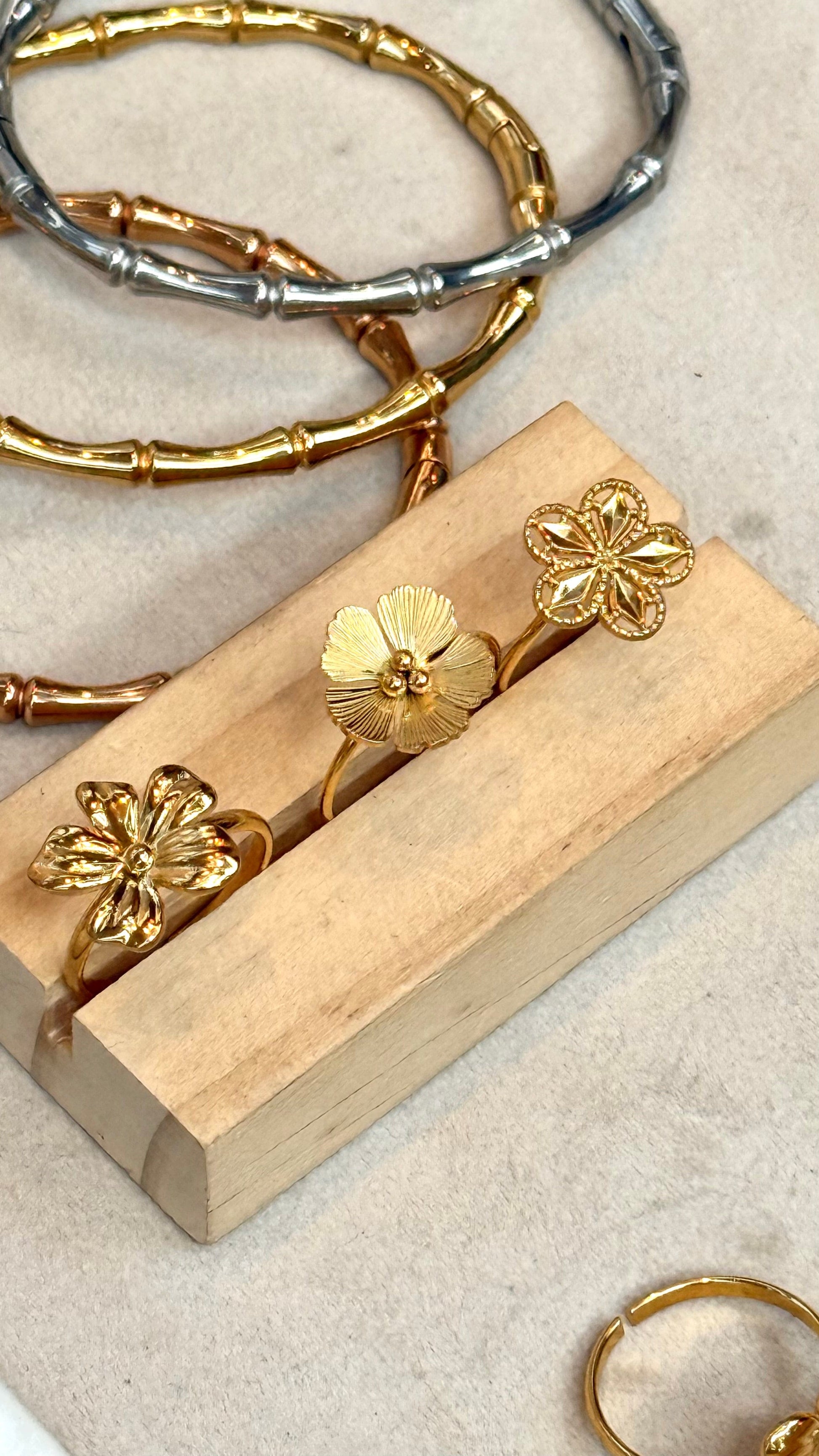Original Flower Sparkling Textured Gold Ring
