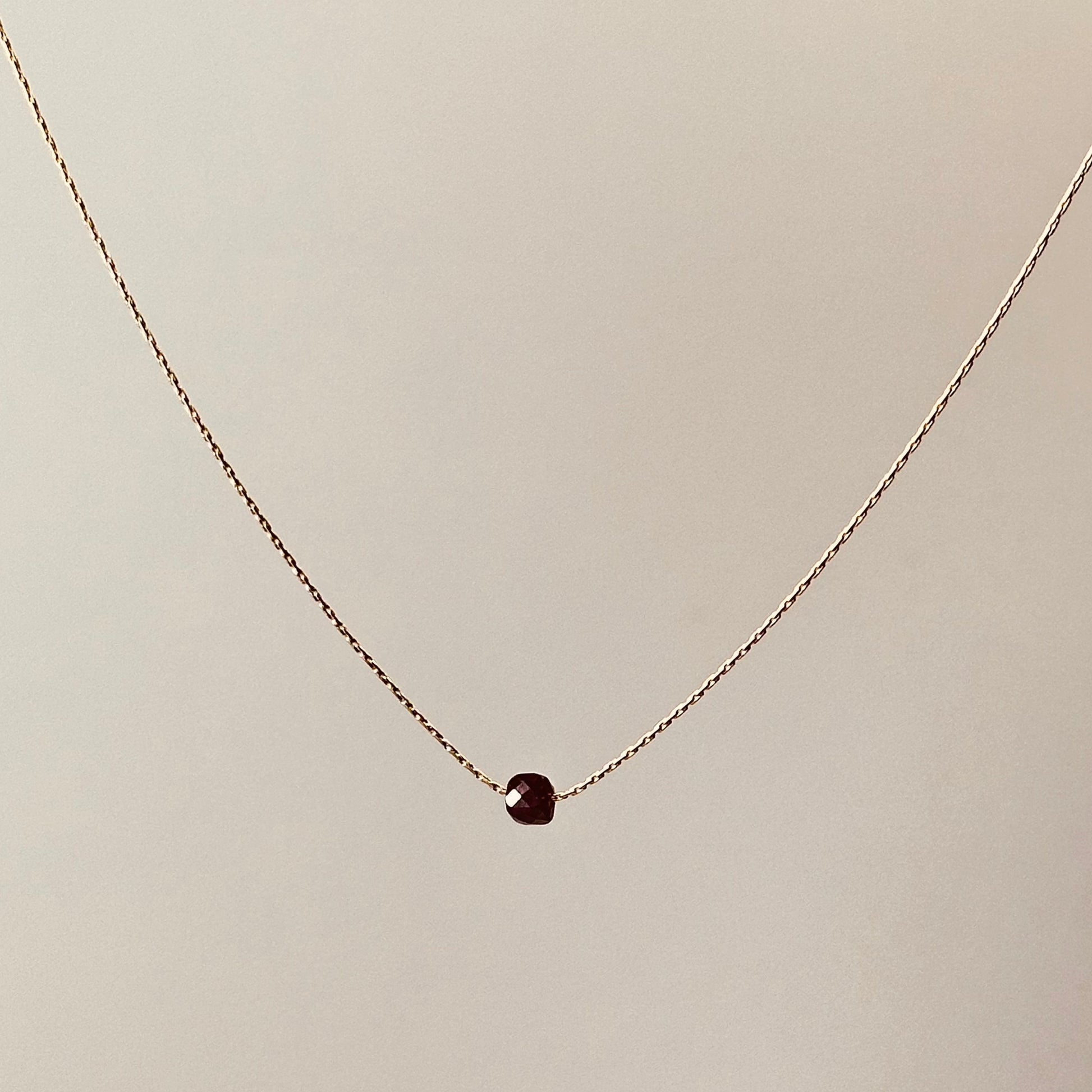 Garnet Gold Necklace (January Birthstone) <br> Minimalist square