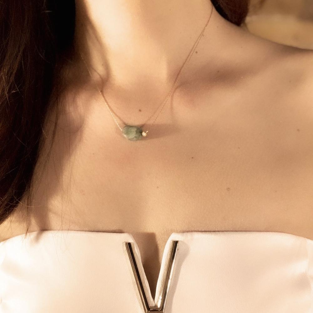 The Gold Emerald necklace has been designed with a contemporary line, simple and elegant.