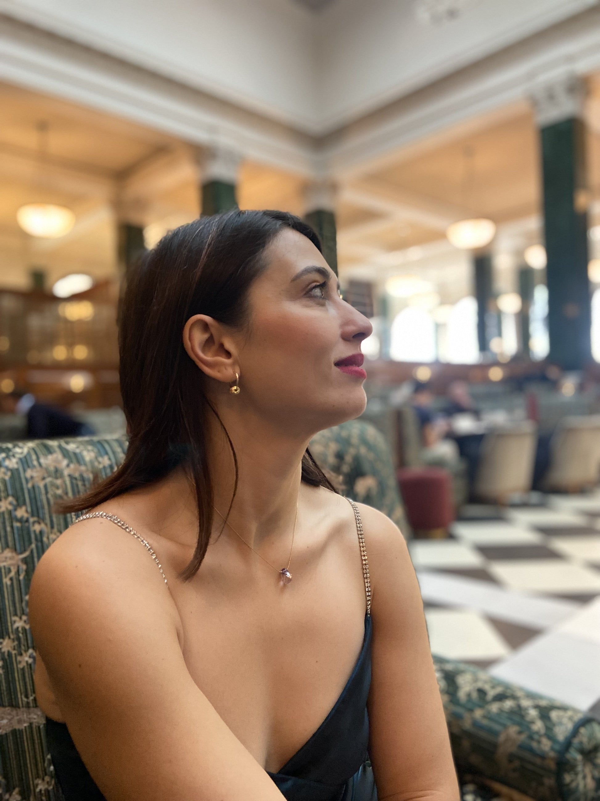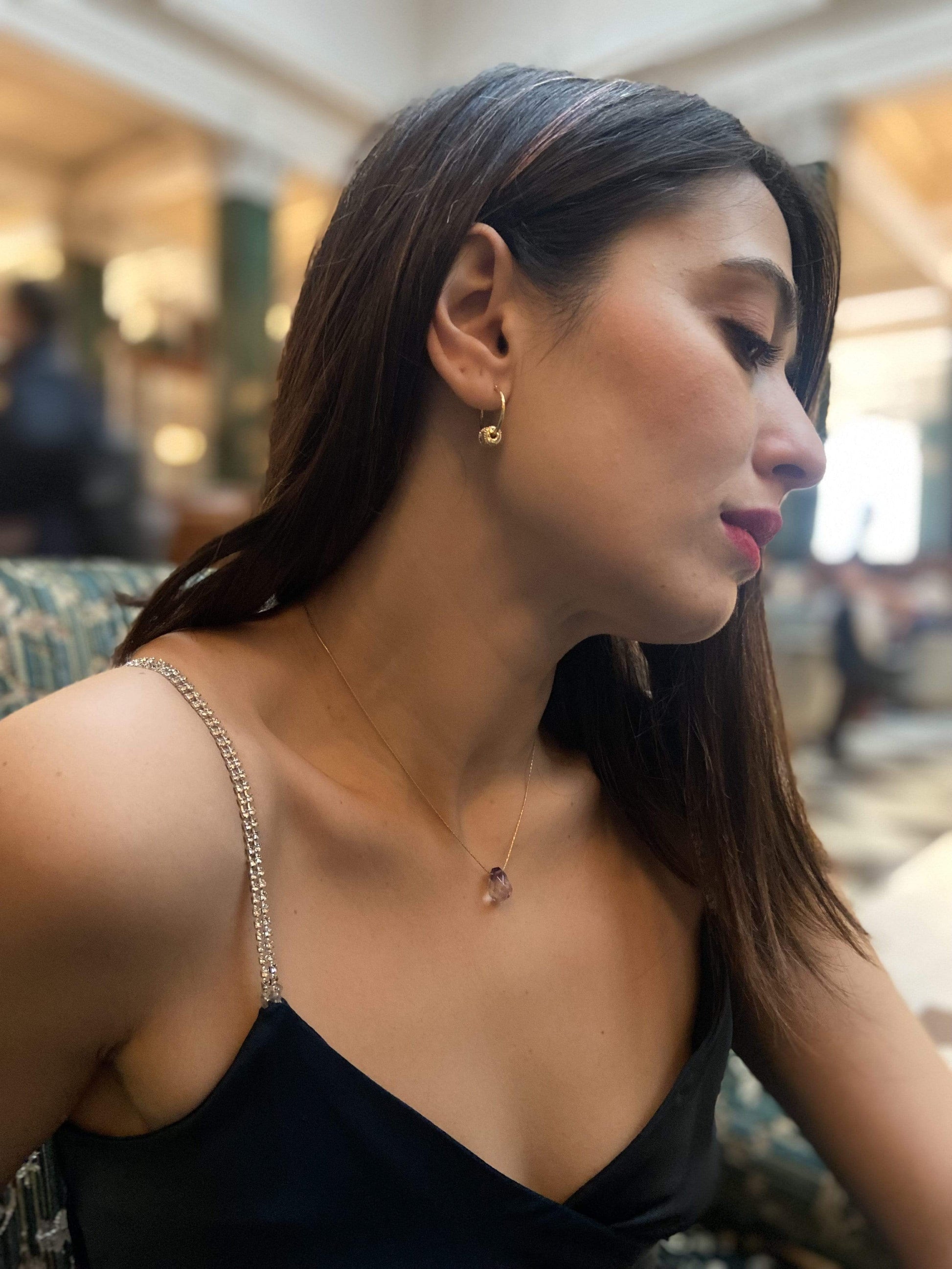 The Gold Amethyst necklace is handcrafted with a gorgeous natural gemstone faceted, enhancing the extraordinary light that we can see from any angle through the stone.