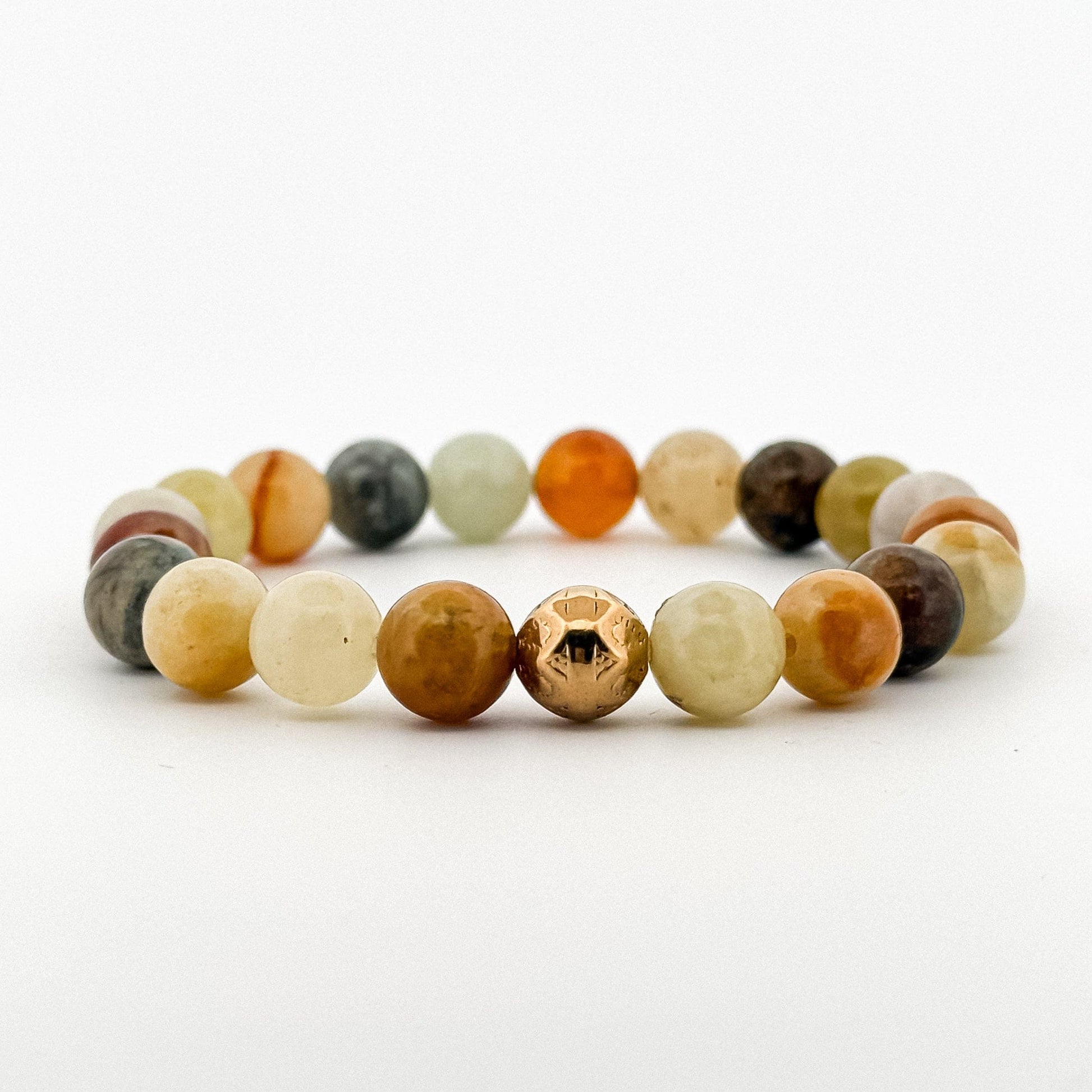 Jade Colourful Gold Bead Engraved Bracelet 8mm