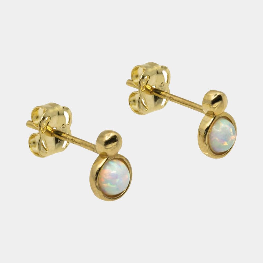 Majestic Fine Design Opal birthstone, simple and elegant pair set of 9k Gold stud earrings for any occasion, daily outfit or a special celebration.