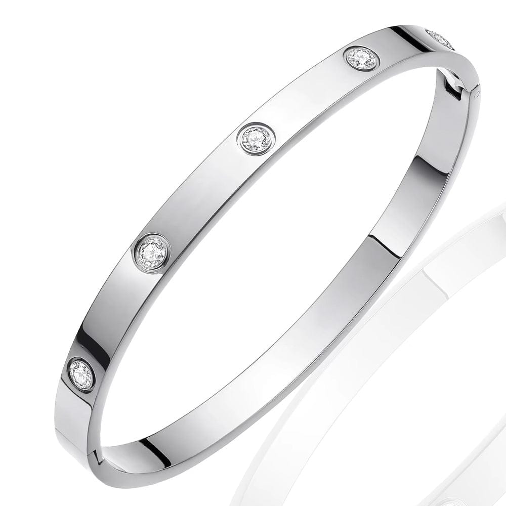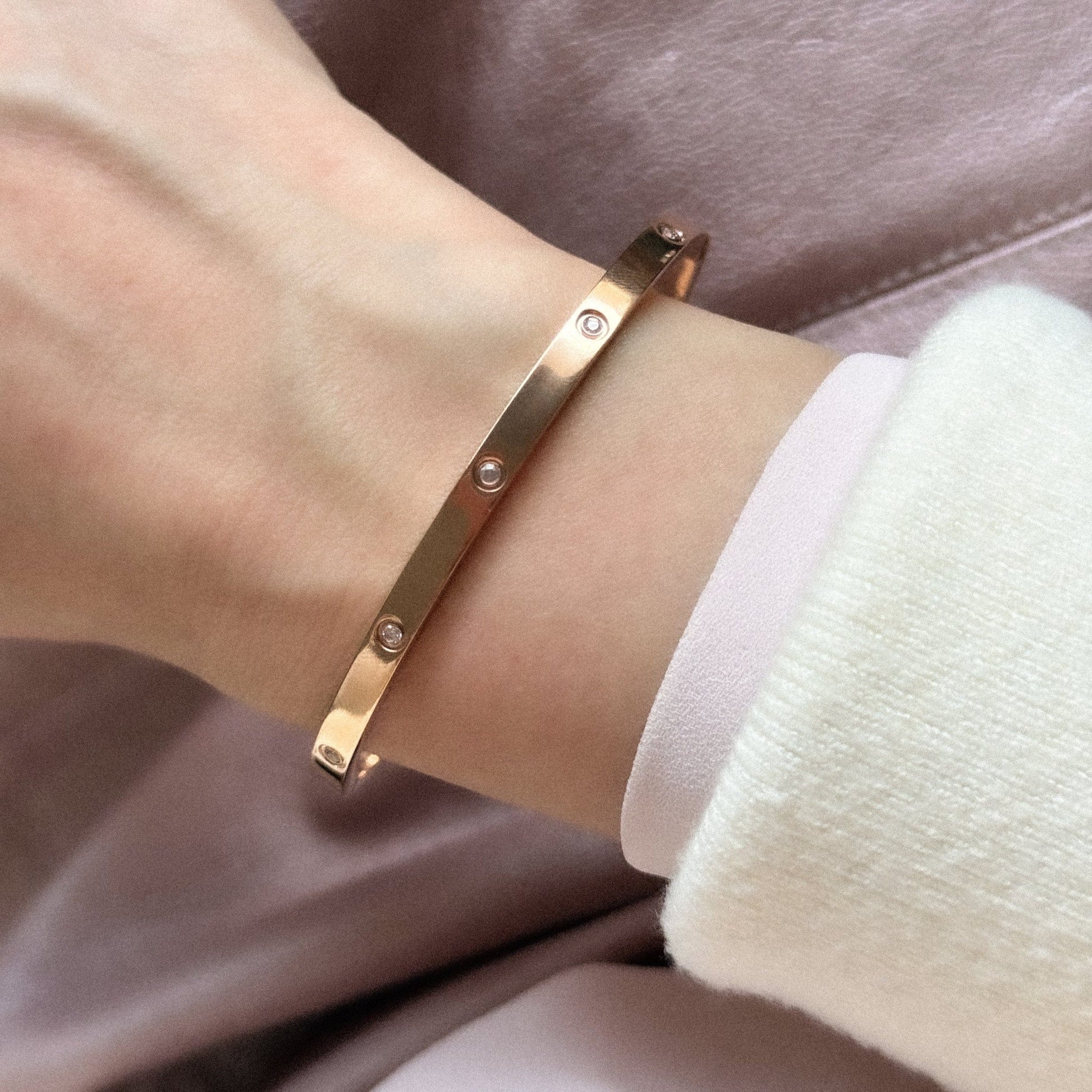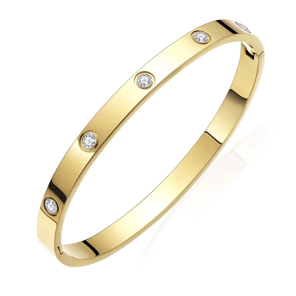The Mery Gold Bangle features stunning cubic zirconia stones that add a touch of sparkle.