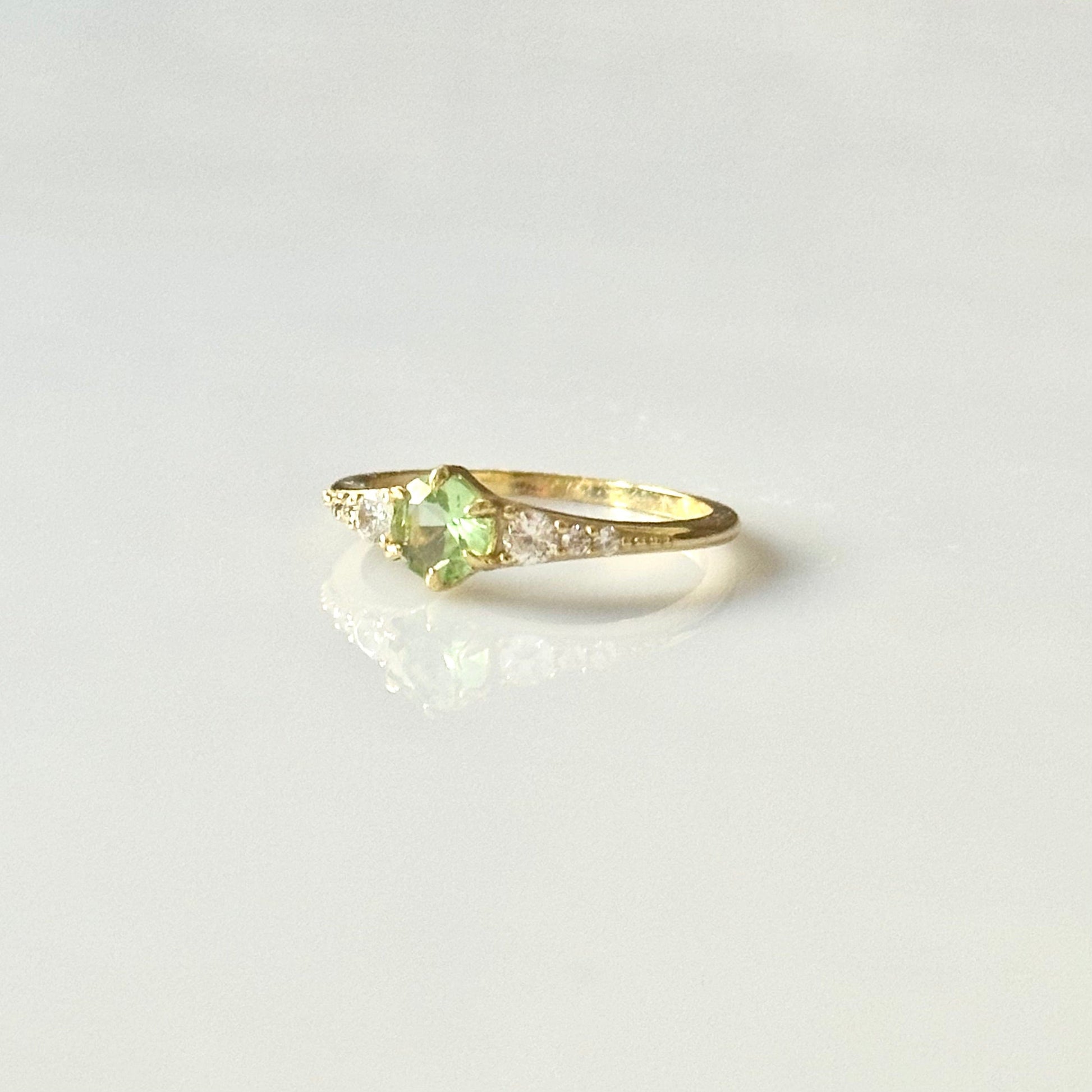 Mirage Ring, stunning green stone surrounded by fine little clear zirconia stones
