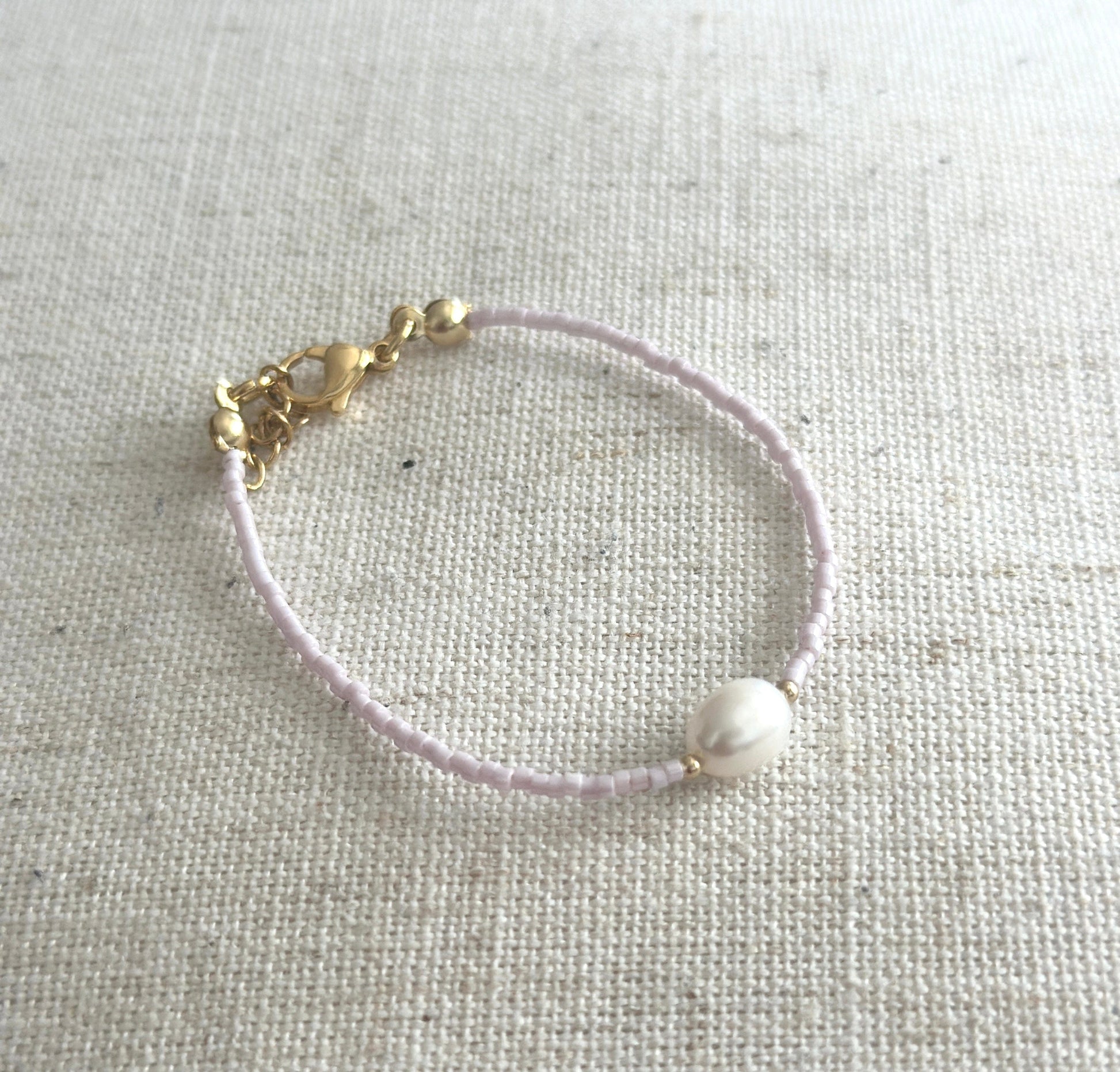 Beautiful Light Lylac Miyuki bracelet, hand made with a natural fresh water pearl