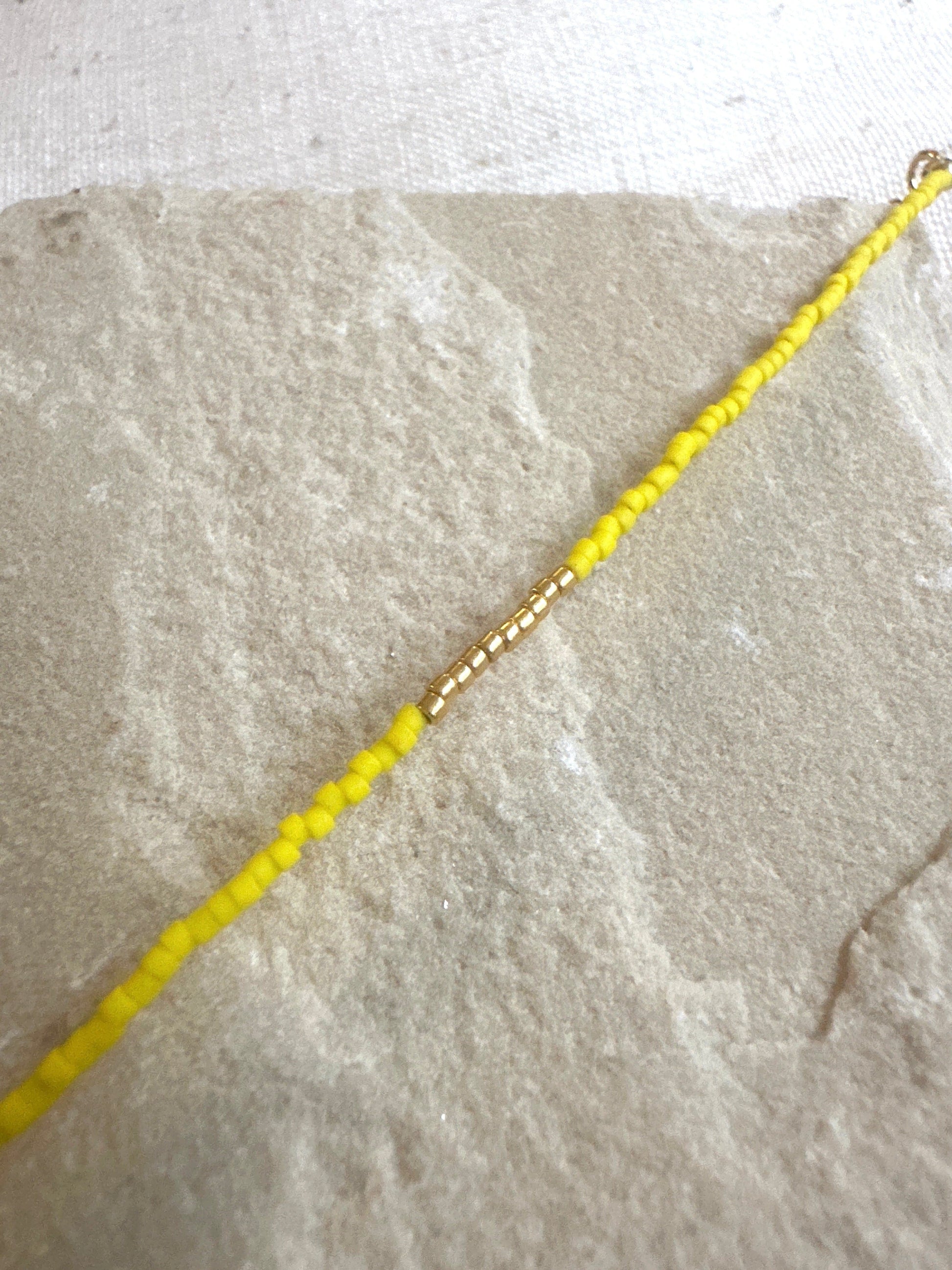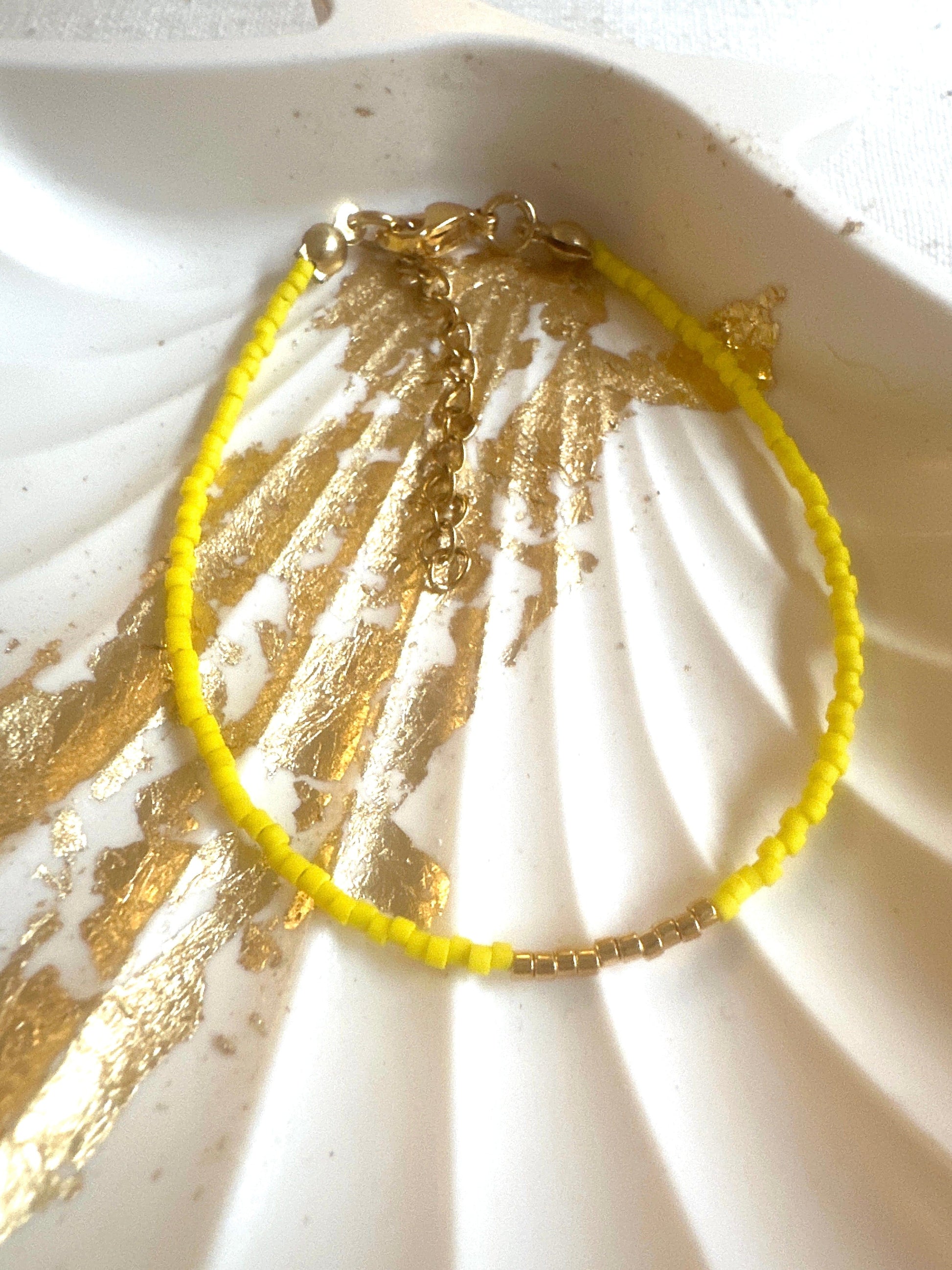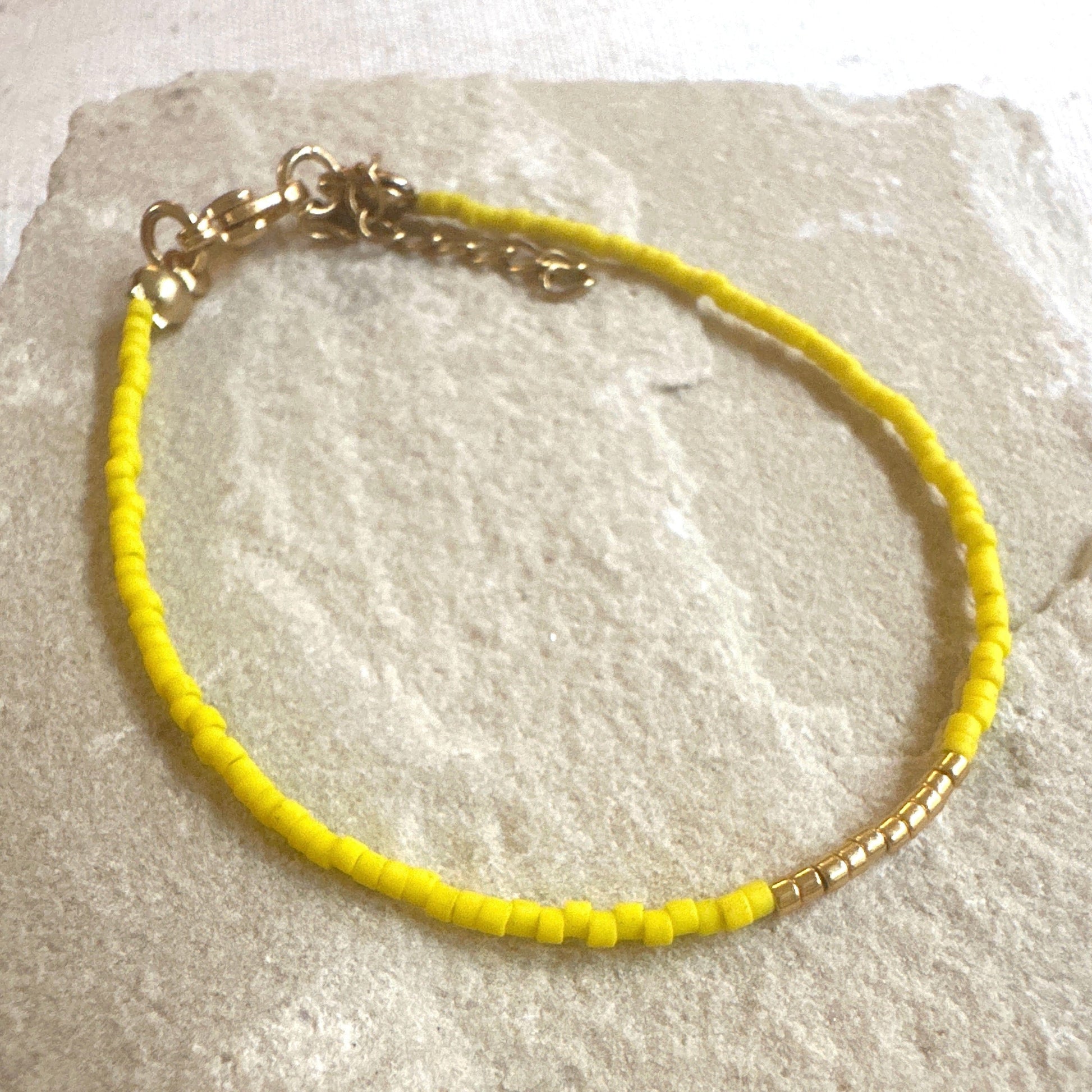 Beautiful bright Yellow Lemon Miyuki bracelet, hand-made with gold