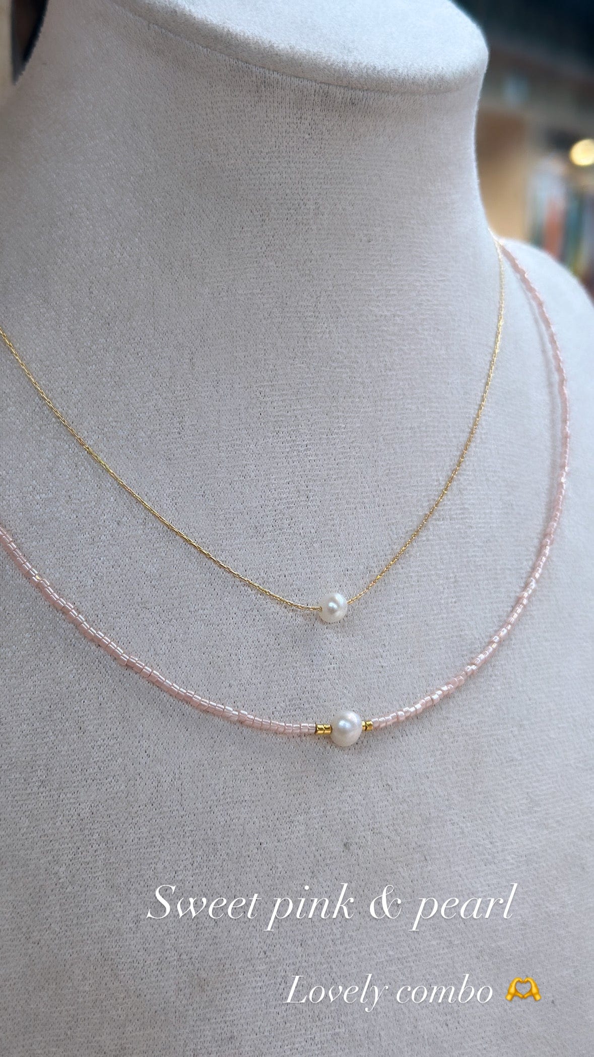 Beautiful light pink Miyuki bracelet, hand made with a natural white pearl