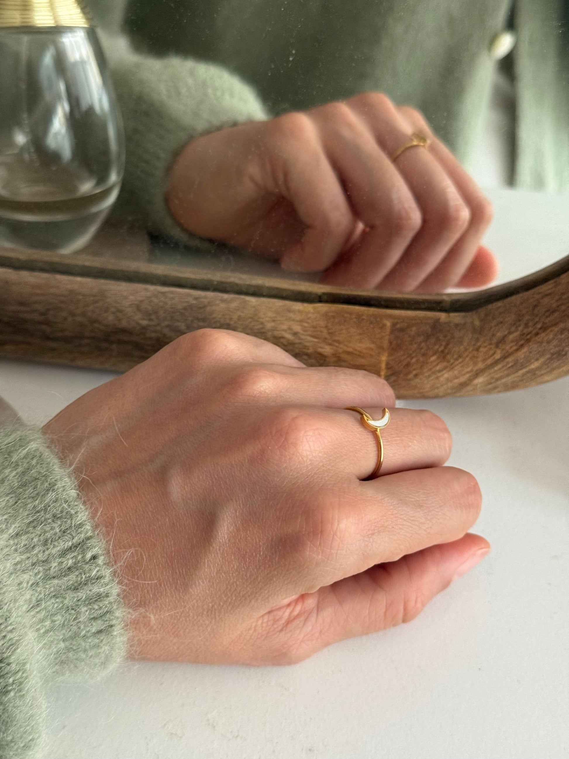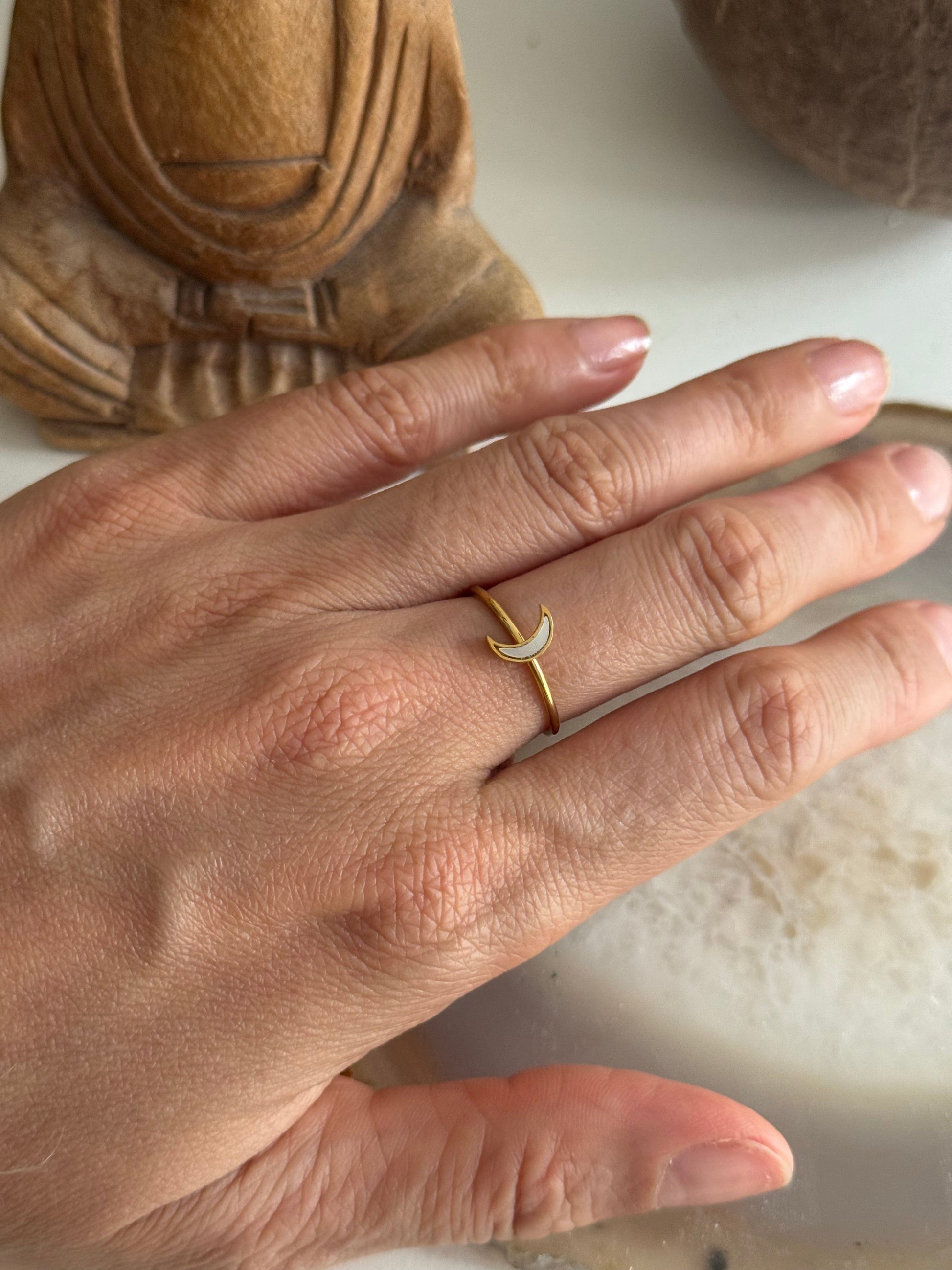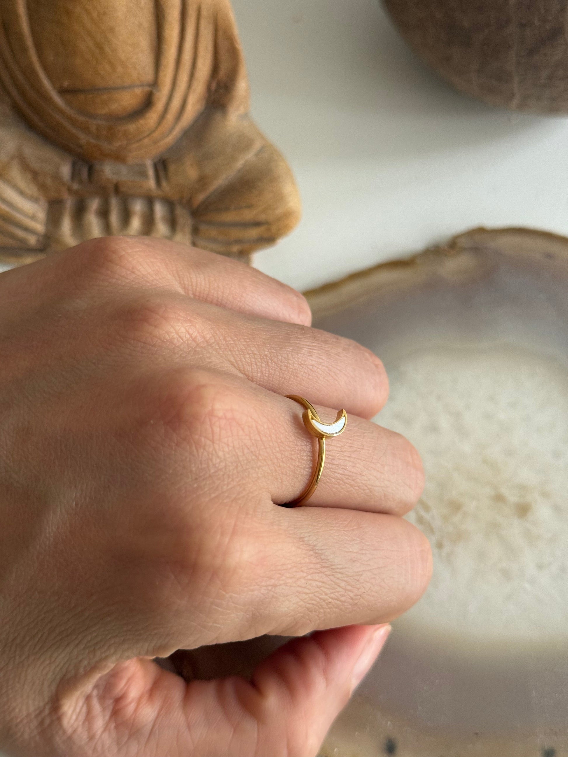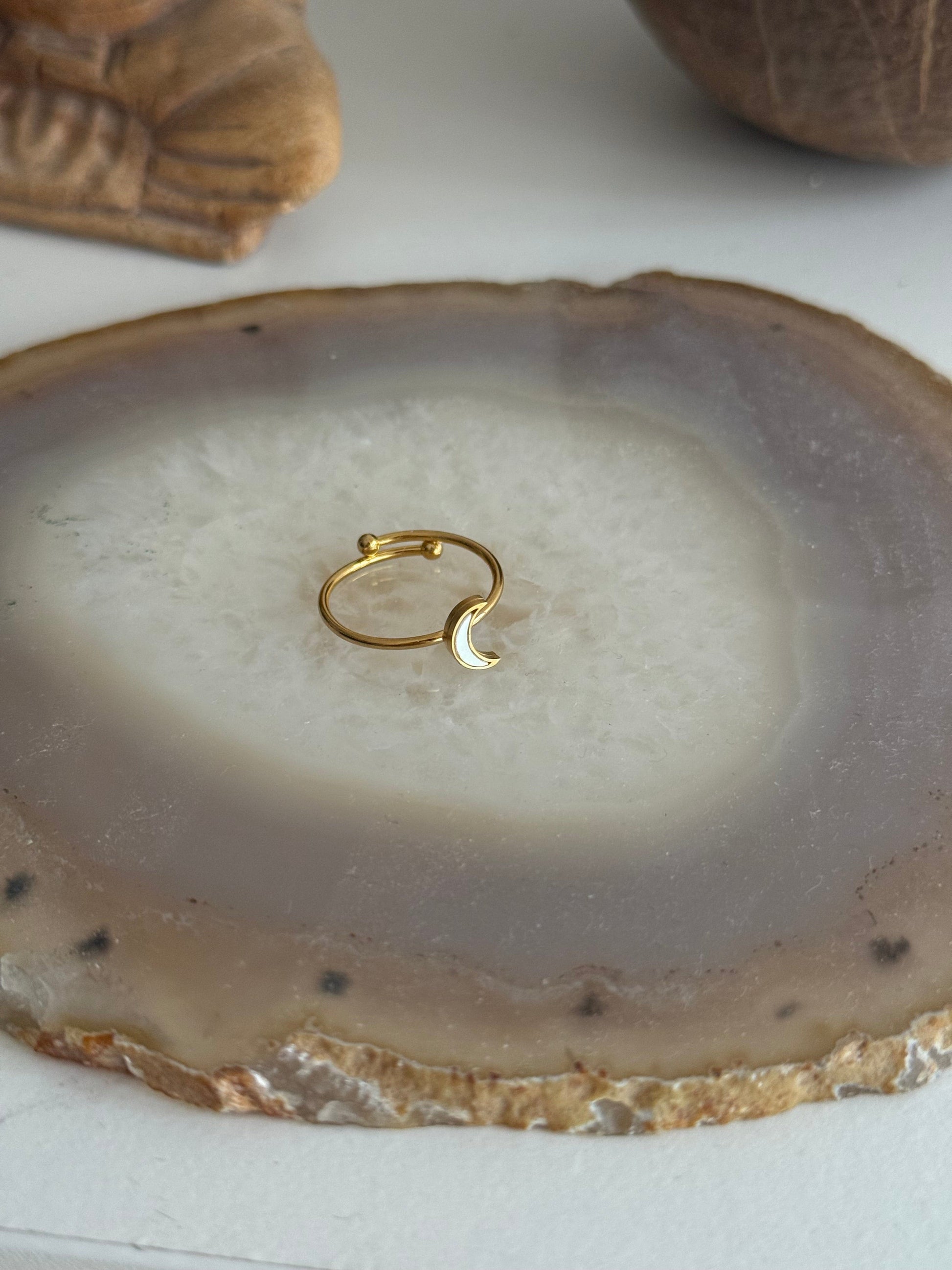 Mother Pearl Moon Gold Ring