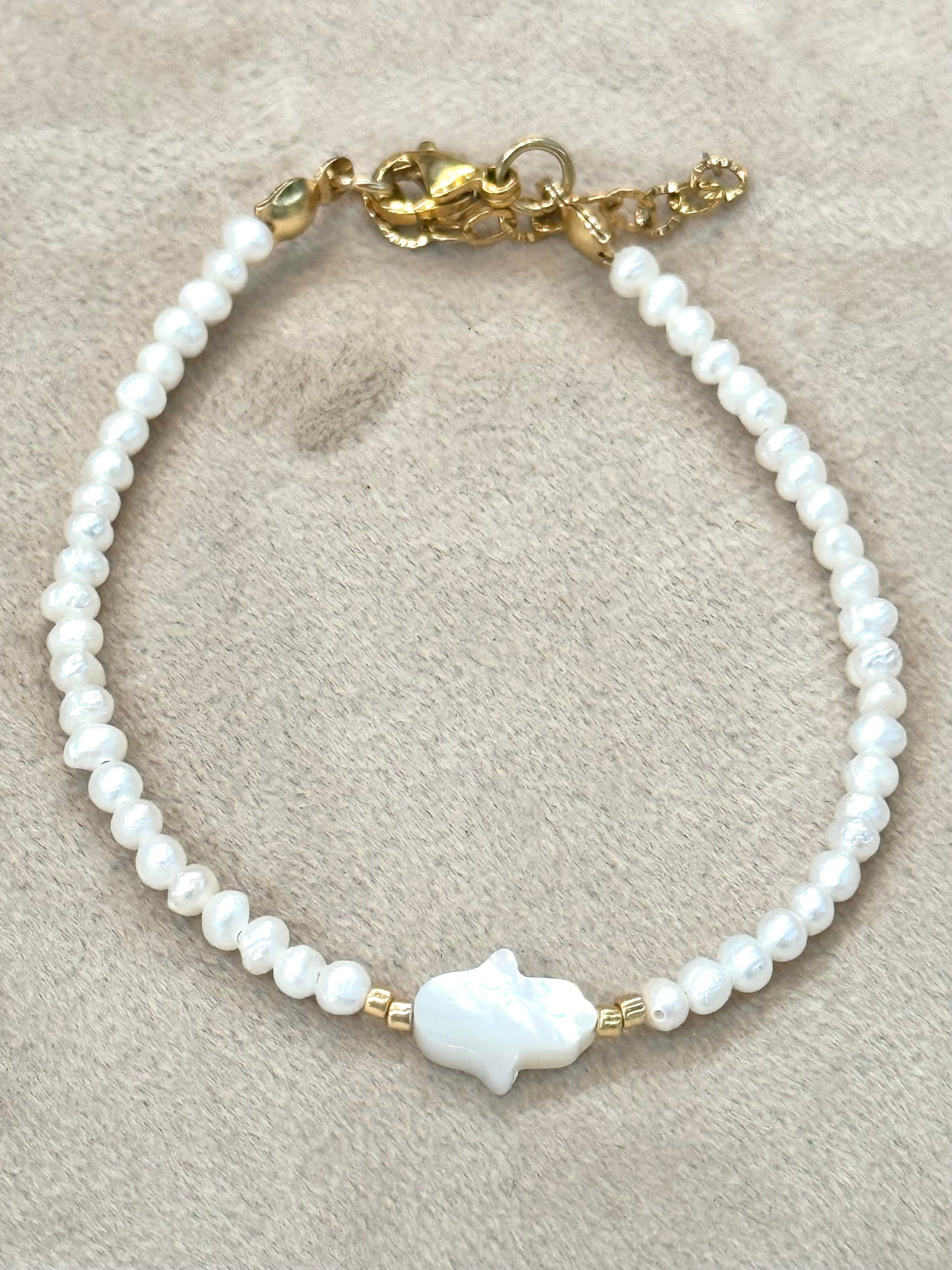 Pearl Bracelet Hand Mother Pearl, gold plated 18k