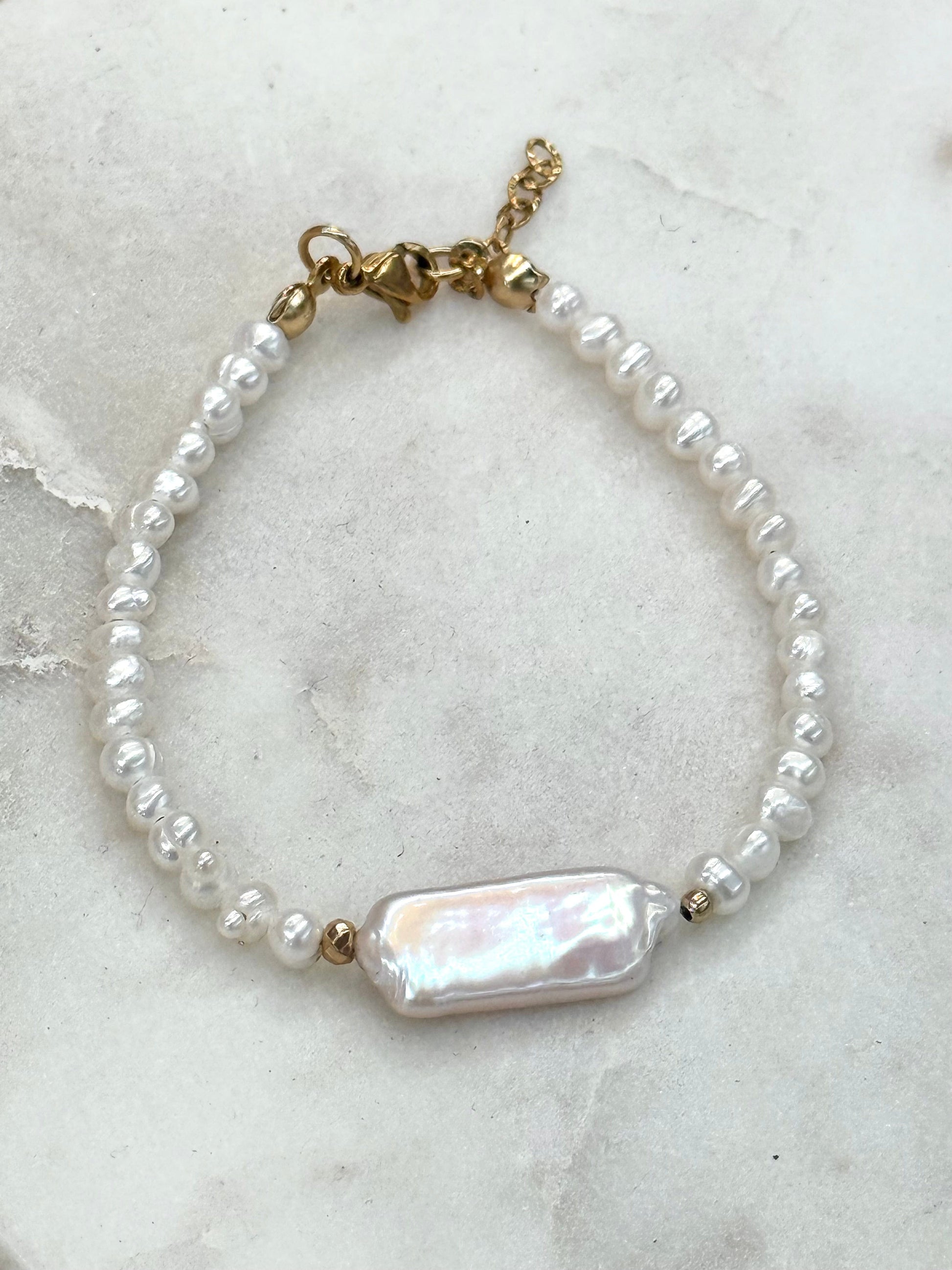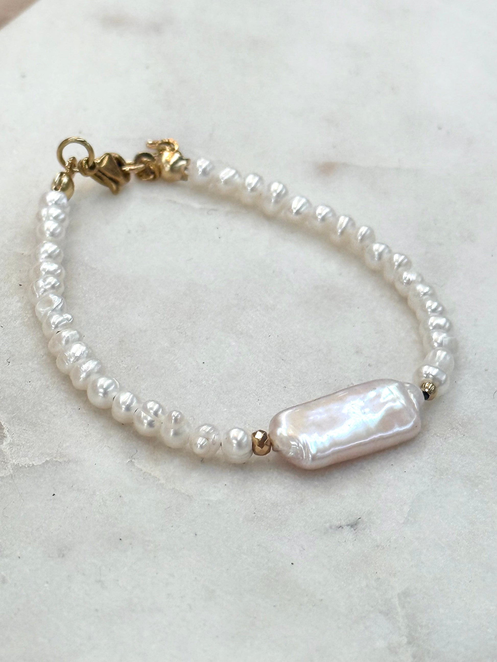 Pearl Bracelet Mother Pearl keishi, gold plated 18k