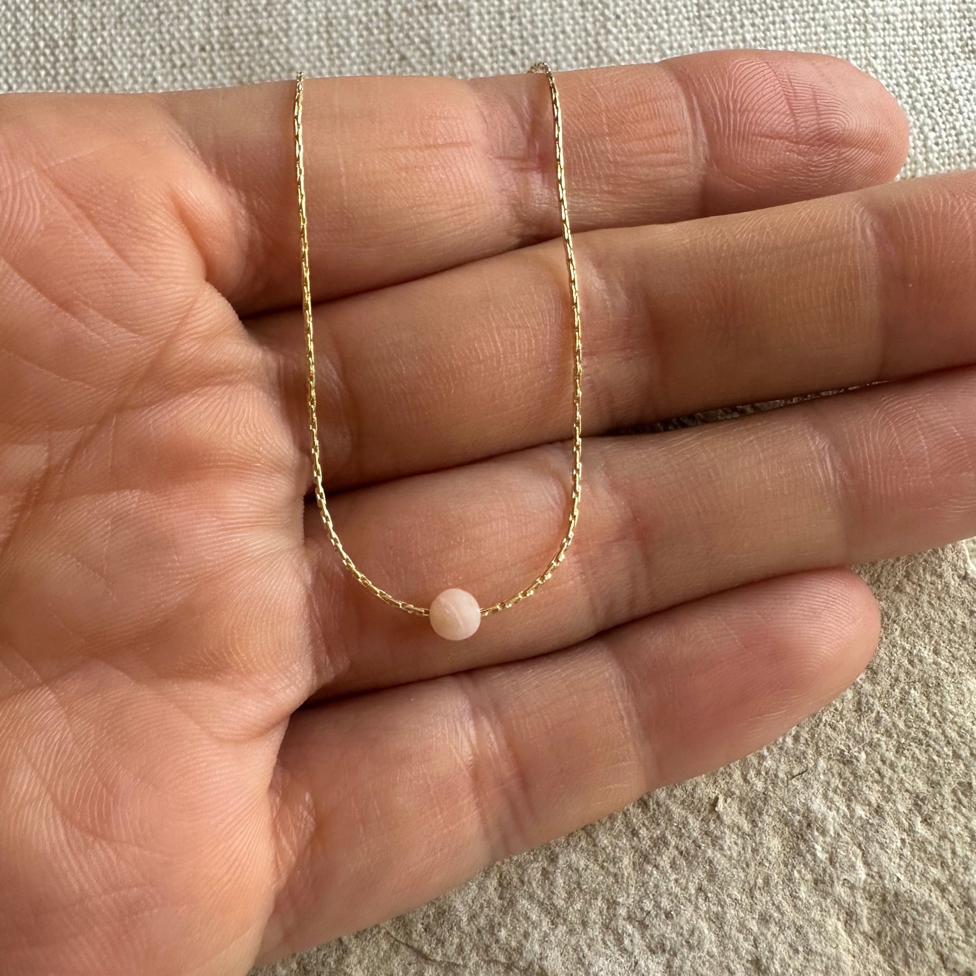 Discover our gorgeous Pink Opal gold necklace, a wonderful natural sweet pink stone, handmade with gold-filled 14k. Natural Heart Chakra Healing stone, balances the heart and bring harmony.