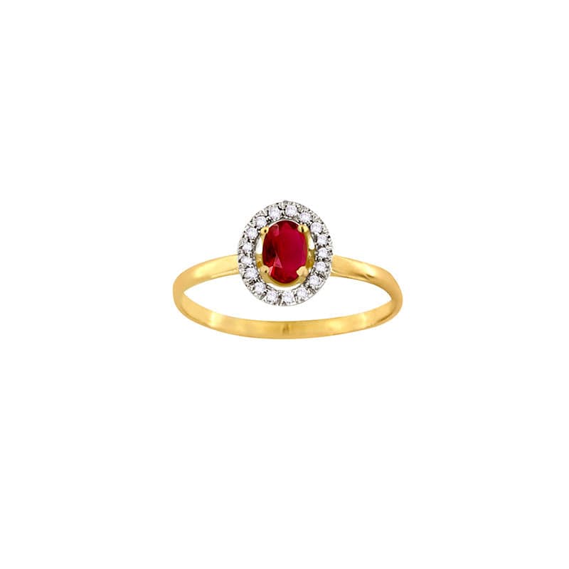Ruby Gold Ring Halo with Diamonds 6x4mm(18k Gold)