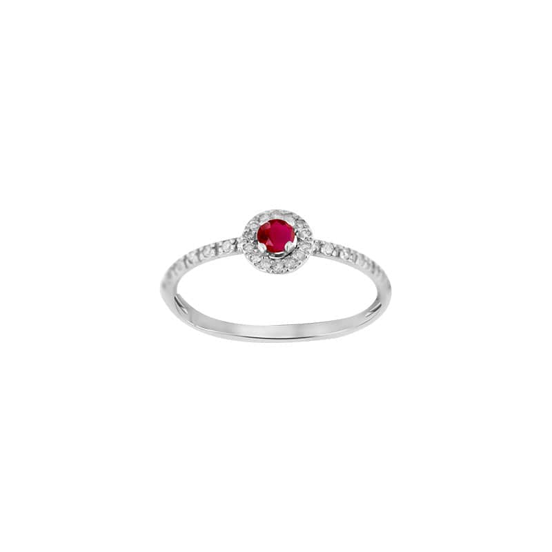 Ruby Gold Ring Halo with Diamonds (White 18k Gold)