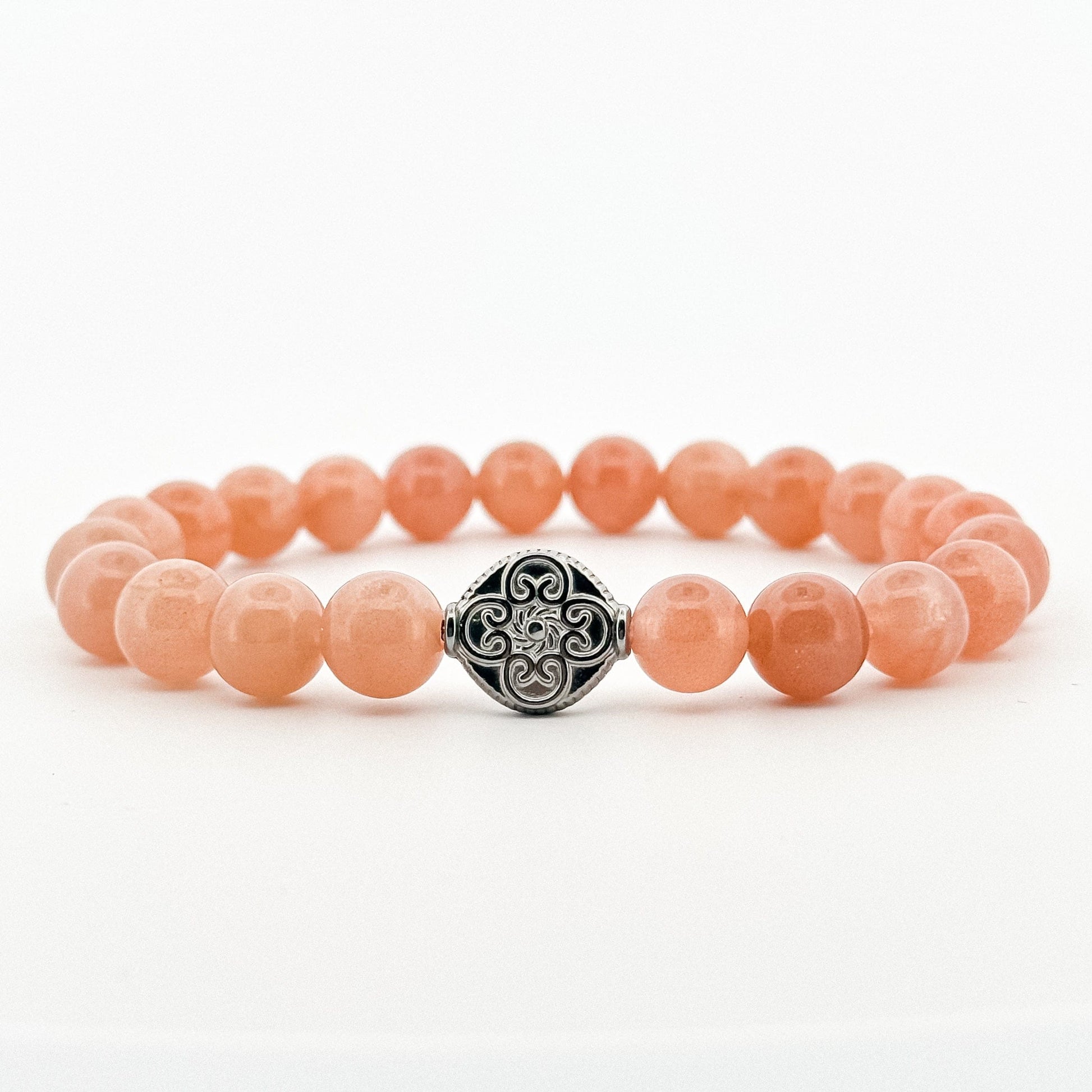 Sunstone Bracelet Silver Coin engraved Flower 8mm