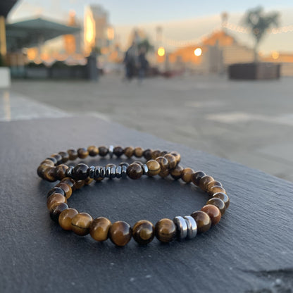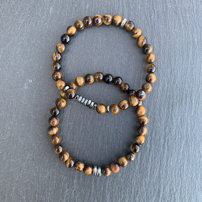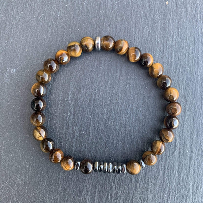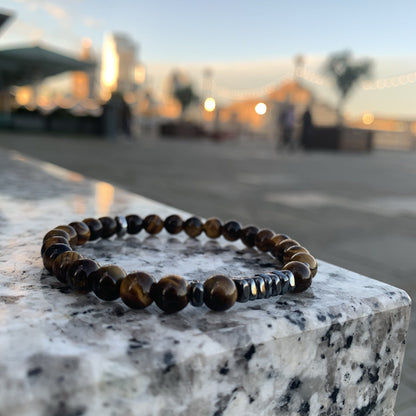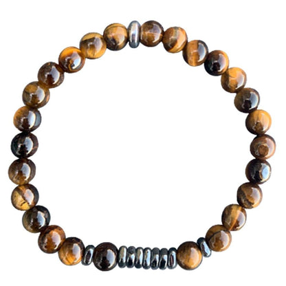Tiger Eye Bracelet (7 Hematite Square Disks) <br> Gunmetal