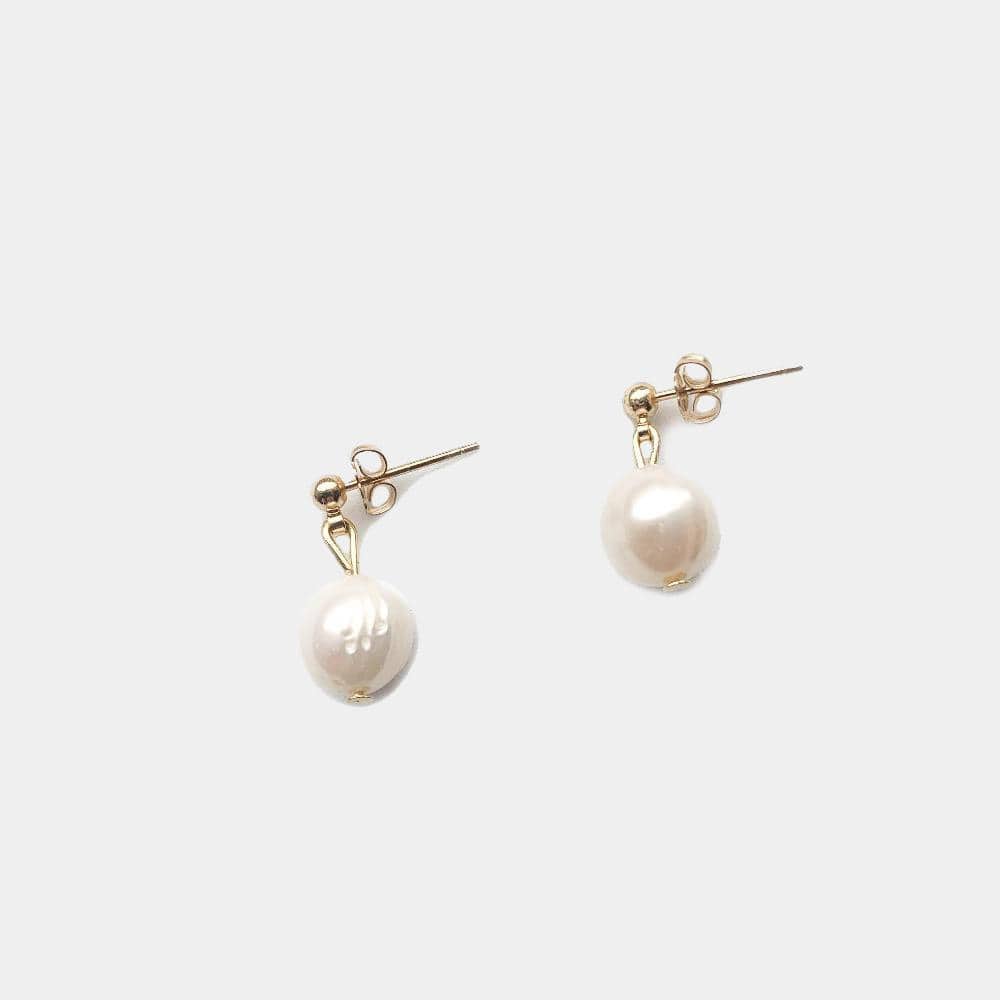 White Pearl earrings, simple and elegant pair set of gold-filled stud earrings for any occasion, daily outfit or a special celebration.